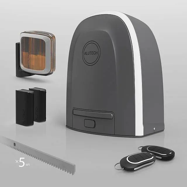 Привод для откатных ворот ALUTECH Roteo RTO‑500KIT + проводные фотоэлементы LM‑L + сигнальная лампа SL‑U + рейка ROA8 (5 шт.)